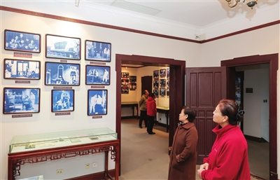 曹禺创作戏剧不同时期的剧照吸引游客驻足欣赏。