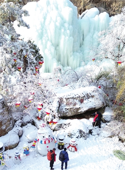 冰瀑、树挂等冬日景观成为蓟州冰雪节亮点。