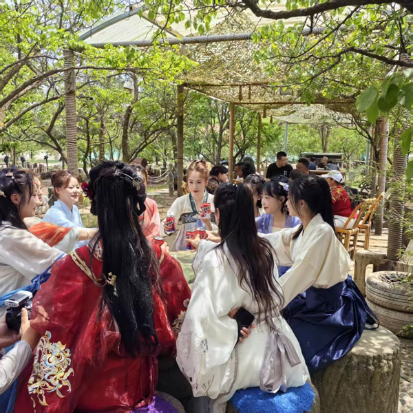 游客在巧媳妇庄园凉亭内聊天、聚餐。(受访者供图)