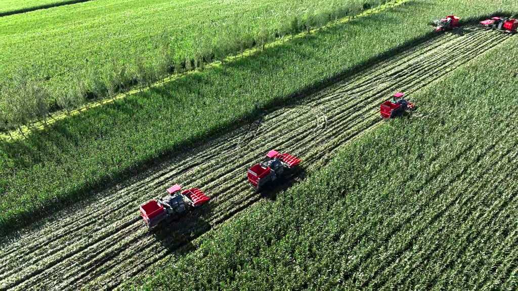 齐齐哈尔市克东县也迎来鲜食玉米的黄金采收期。田间,现代化的采收机械往来穿梭,一棒棒饱满的鲜食玉米被快速采收,满载着玉米的货车排起长队,等待运往加工车间。